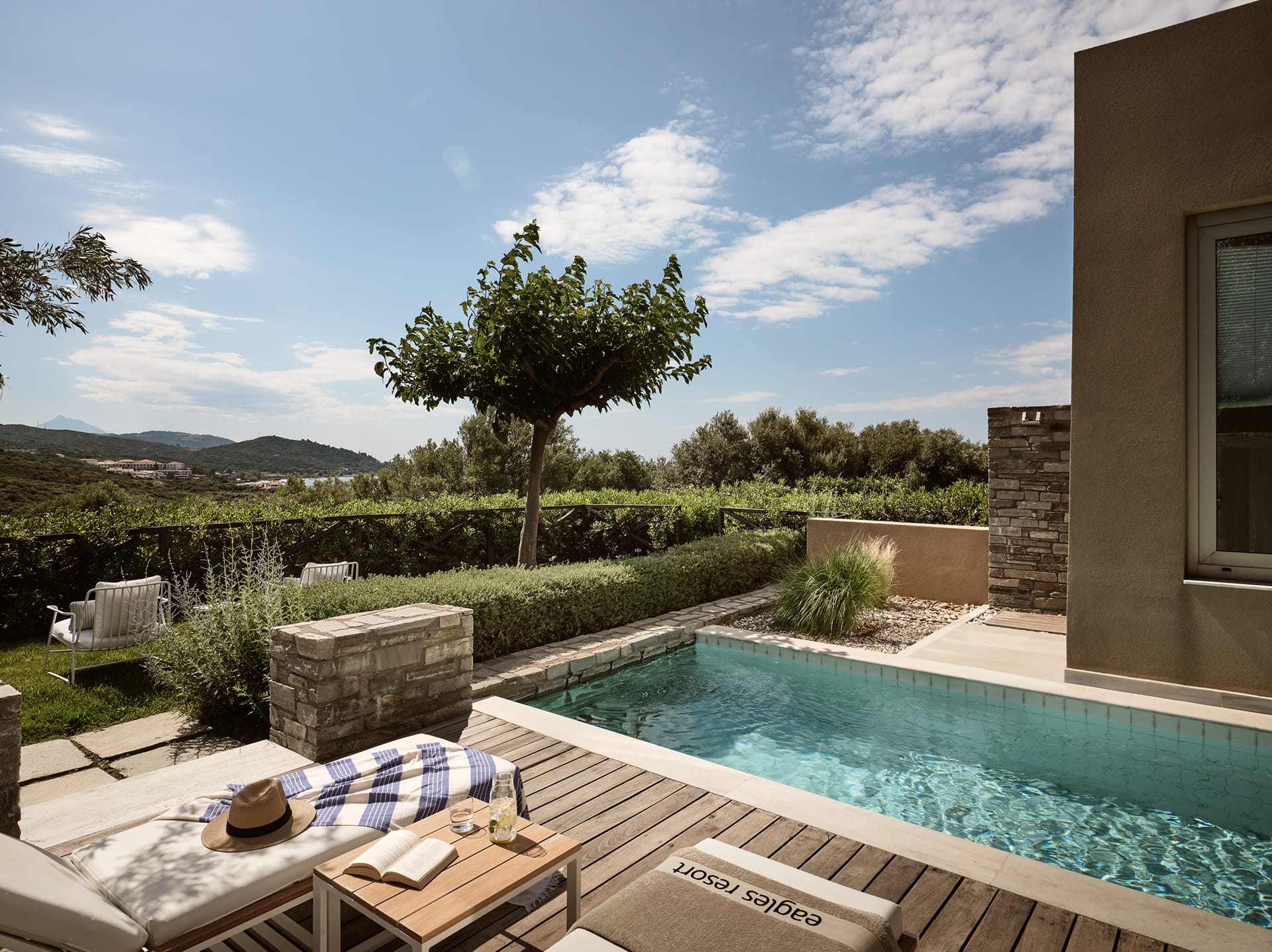 The Ocean One-Bedroom Pool Villa with Private Garden is a luxurious peaceful sanctuary in Ourounapolis, where nothing stands between you and your holiday dreams. Dine al fresco, bask in the sun, splash in your pool, and let the effervescent sea views wrap you in the ultimate experience. This villa can also accommodate two children if you are travelling together as a family.